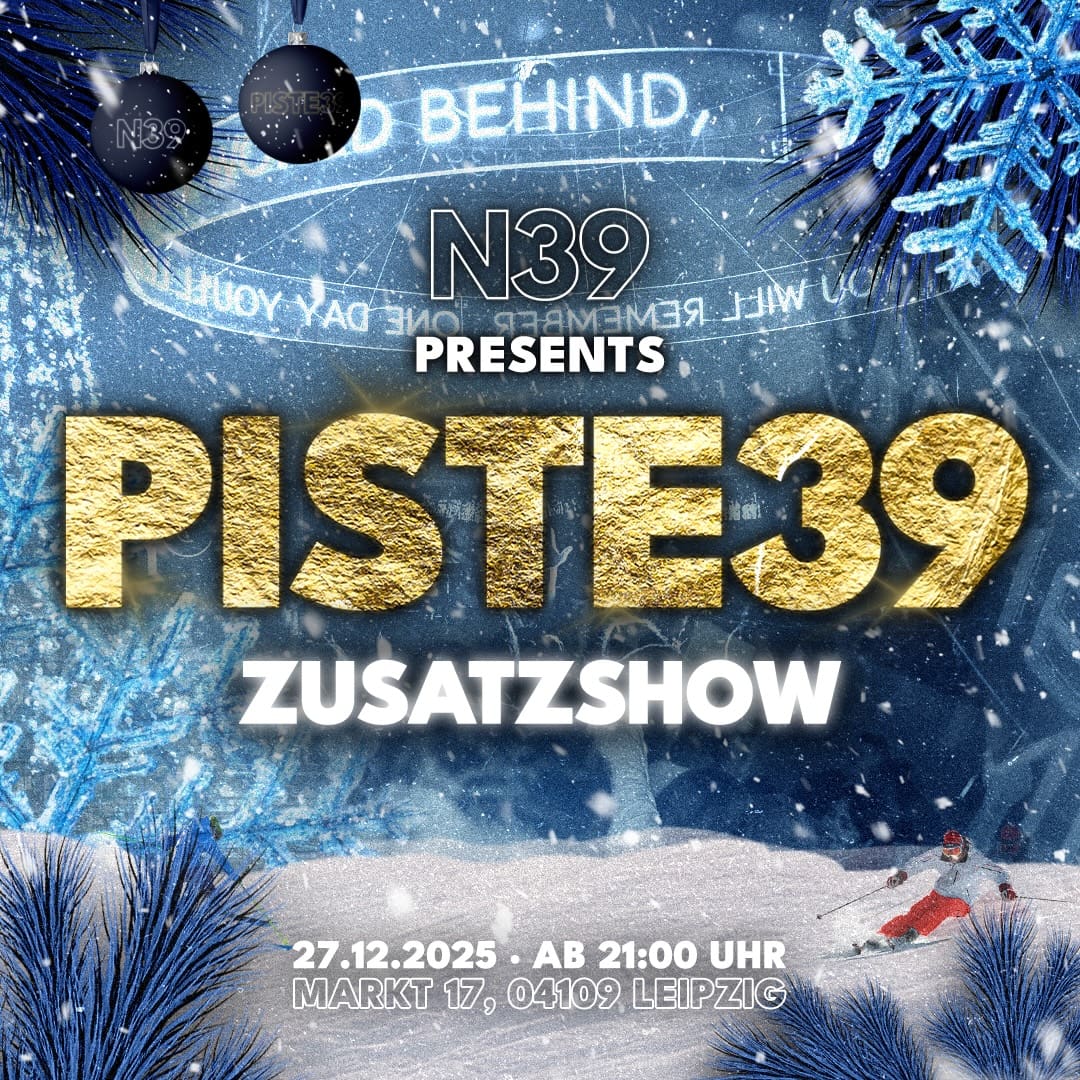 ZUSATZSHOW PISTE39 – 26. & 27. DEZEMBER IN LEIPZIG Die PISTE39 geht in die Verlängerung! Nach dem großen Erfolg öffnen wir am 26. & 27. Dezember erneut ab 21 Uhr die Türen im Club N39 und bringen euch noch einmal pures Pistenfieber mitten in Leipzig. Freut euch auf AllMixed, Partyclassics & Après-Ski, heiße Drinks, kalten […]